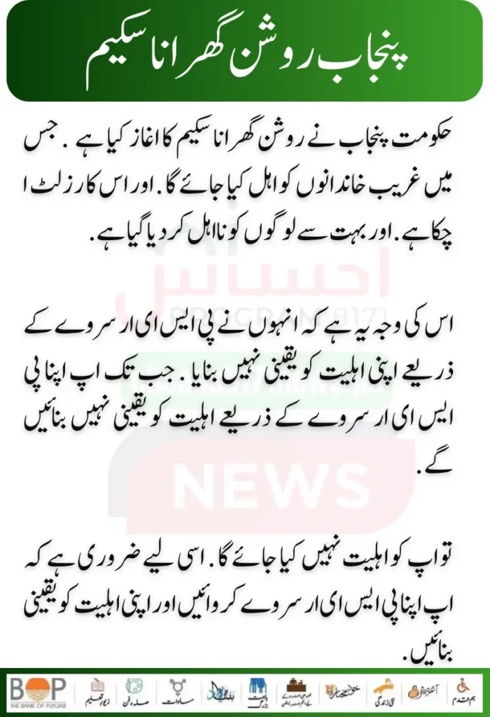 How can families ensure their eligibility in the Punjab Roshan Gharana Scheme? The complete procedure is explained in the article.