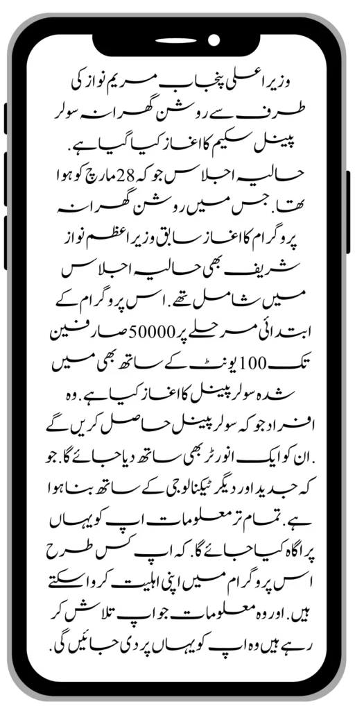 Chief Minister Punjab Maryam Nawaz launched the Roshan Gharana Solar Panel Scheme at a meeting in 2024. FormerΒ Prime Minister Nawaz SharifΒ was also involved in the meeting. This program is in its initial phase.