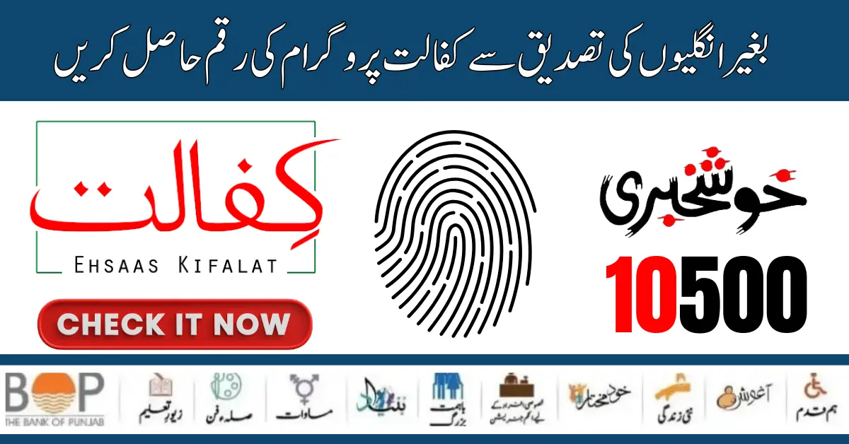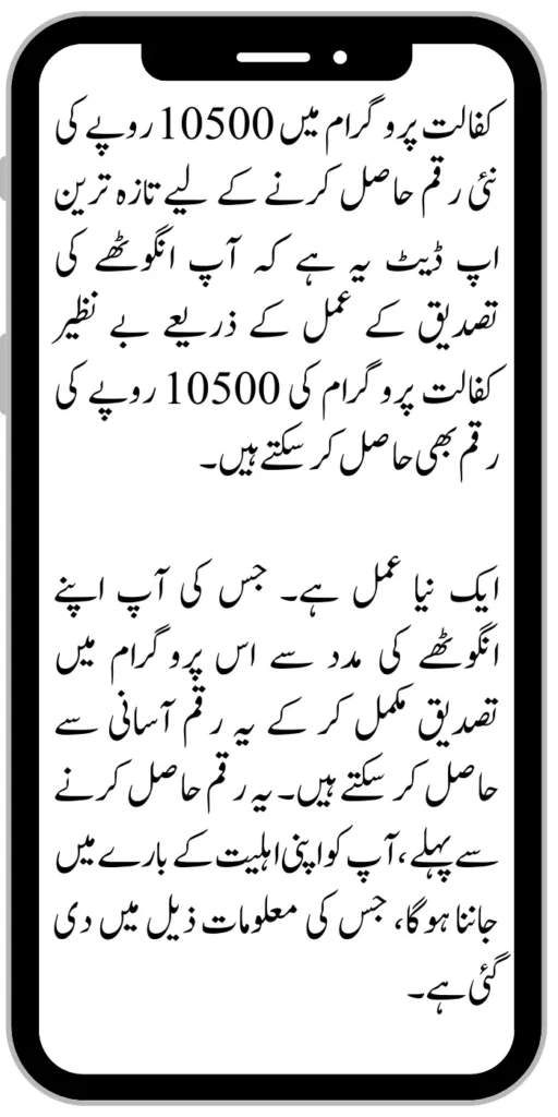 The latest update to get the new amount of Benazir Kafaalat Program 10500 rupees in the Kafaalat program is that you can also get the 10500 Rs amount of the Benazir Kafaalat program through the thumb verification process.
