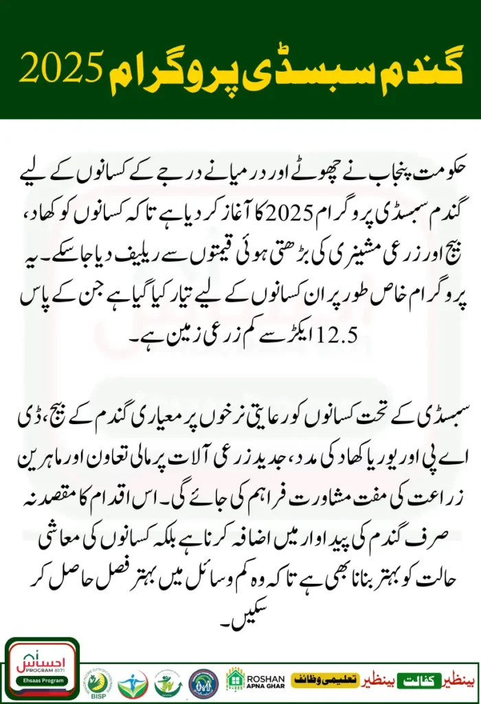 The Government of Punjab has launched the Wheat Subsidy Program 2025 to support small and medium-scale farmers in the region. With the rising prices of fertilizers, seeds, and machinery, many farmers face financial challenges. This initiative aims to reduce their production costs and encourage wheat cultivation to strengthen food security across Punjab.