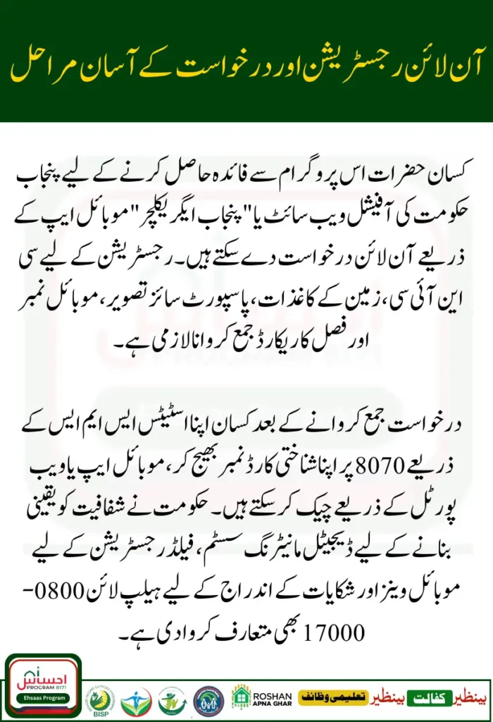 | Documents Needed | CNIC, land documents, photo, crop details, mobile number |